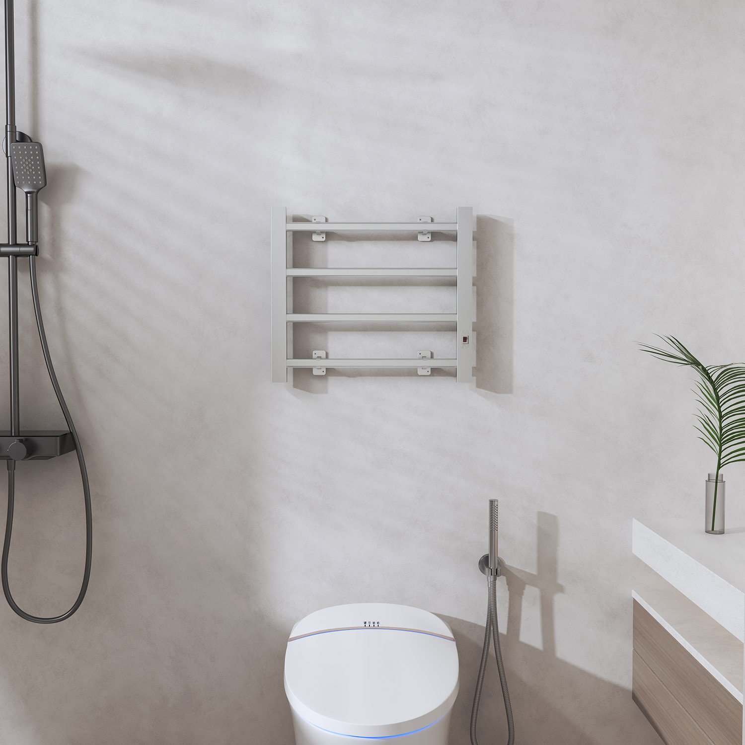 4桿電熱毛巾架 5 bar heated towel rail 材質Material:Space aluminum and PP plastics 太空鋁+PP塑料 功率Power:220V/60W 表面Surface:Silver Oxide 氧化銀 尺寸Size:460*60*580mm 包裝Ctn size:480*60*610mm